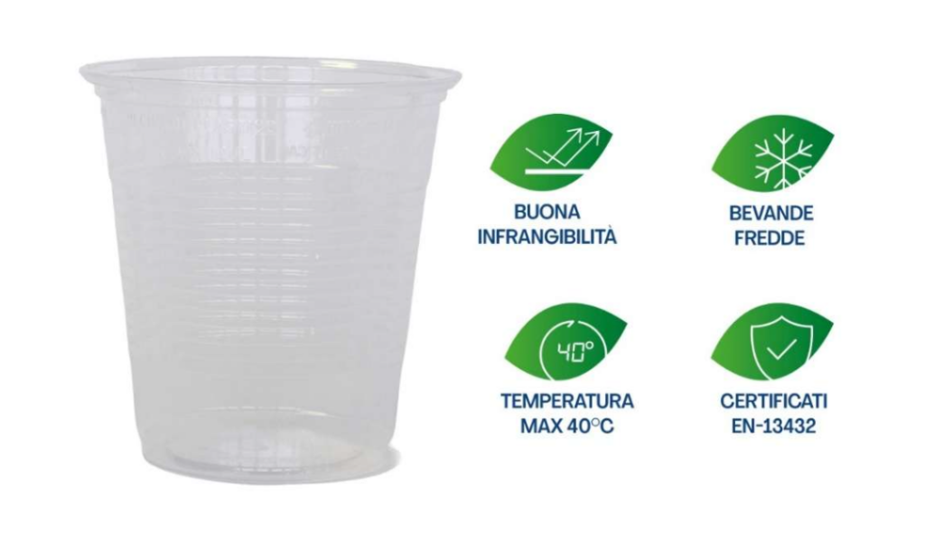 Realizzato in biopolimero PLA da risorse rinnovabili, il nuovo bicchiere da 180 ml rappresenta una scelta attenta all’ambiente senza compromessi su qualità e funzionalità.